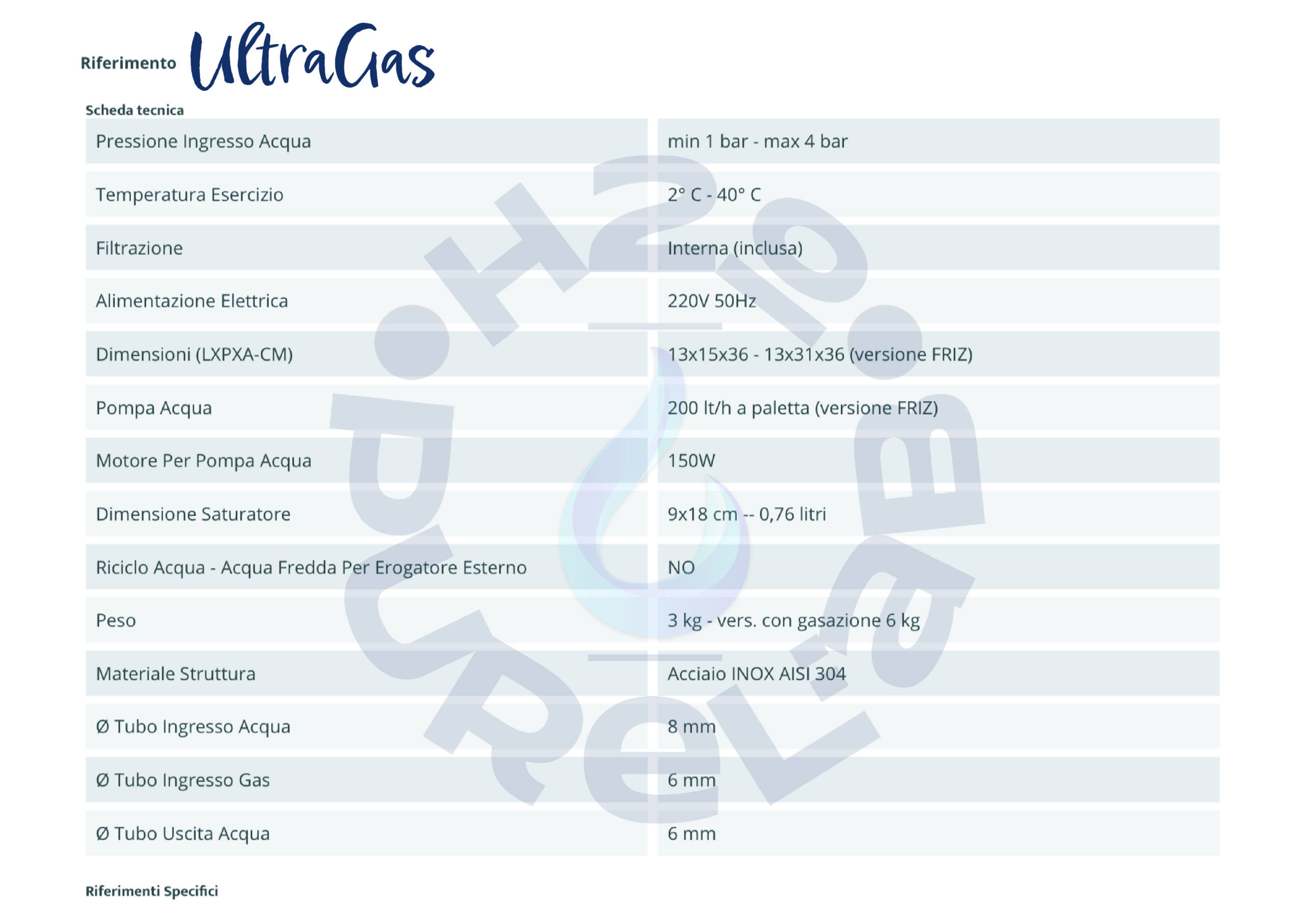 UltraFRIZZ è costruito con materiali atossici con idoneità certificata al contatto con l’acqua potabile. La struttura è in acciaio inox AISI 304. Con la versione ULTRAFRIZZ si ottiene anche ACQUA FRIZZANTE.